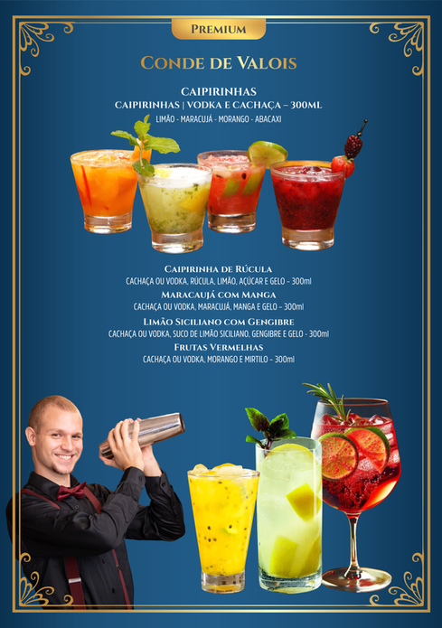 Caipirinhas + Aperol Spritz + Negroni + Moscow Mule + Gin Tonic + Gin Frutas Vermelhas + Apple Soda + Pineapple Fizz + Pina Descolada + Soda Italiana