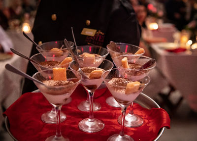 Salada caprese, risoto de gorgonzola com maça verde, medalhão de mignon ao molho de cogumelos frescos tartufado, raviolone de brie com presunto di parma ao molho alfredo di roma.