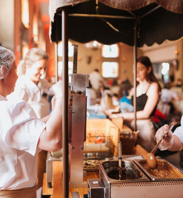 E, é claro, nossa equipe de chefs preparou um menu delicioso para manter todos bem alimentados. E variedade de carrinhos com guloseimas. Toda a alimentação e bebidas serão vendidas à parte.