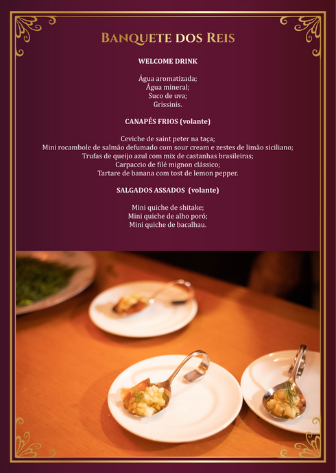 Canapés, Petit Menu, Jantar Servido em Ilha, Sobremesa e Mesa de Café